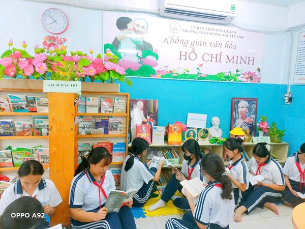 Trường Trung học sơ sở Sương Nguyệt Anh, xây dựng không gian giới thiệu về cuộc đời và sự nghiệp của Bác qua hình ảnh, nổi bật là những bức chân dung ...